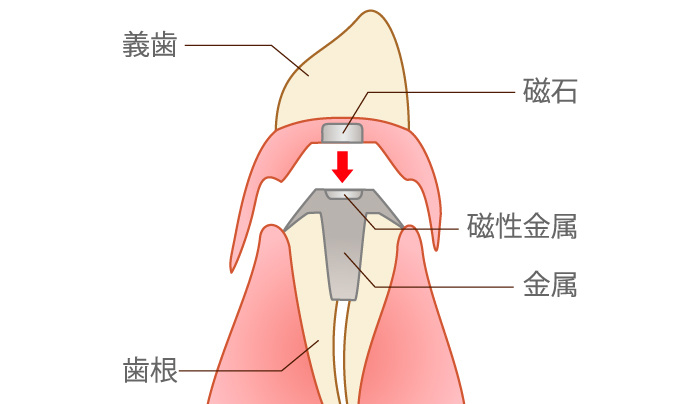 磁石の力で歯肉と義歯をしっかりと安定させる入れ歯です。