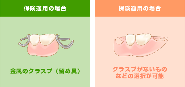 部分入れ歯に必要なクラスプ(留め具)の材質も金属しか選択できませんので、場所によっては一目で入れ歯と分かってしまうことがあります。