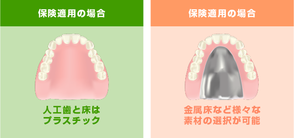 保険適用の入れ歯は、人工歯と床(しょう=歯茎となる部分)の素材が樹脂(プラスチック、レジン)のみに限られています。
