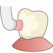 研磨剤と円錐形のゴムチップで歯と歯のあいだを磨いていきます。歯肉のマッサージ効果も期待できます。