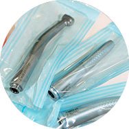 細菌やウイルスは洗浄・消毒だけでは完全には落とせません。そこで、当院では、安心して治療を受けて頂くために、患者様のお口の中に入る器具は高圧蒸気滅菌器(オートクレーブ)という高圧蒸気で滅菌処理を行う機器を使い、感染を引き起こす微生物を完全死滅させております。使用する器具は滅菌パックに入れひとつひとつ滅菌しています。使用するまで滅菌パックを空けないので非常に衛生的です。