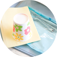 注射針・紙コッブ・エプロン・グローブなどはすべてディスポーザブル(使い捨て)のものを使用しています。