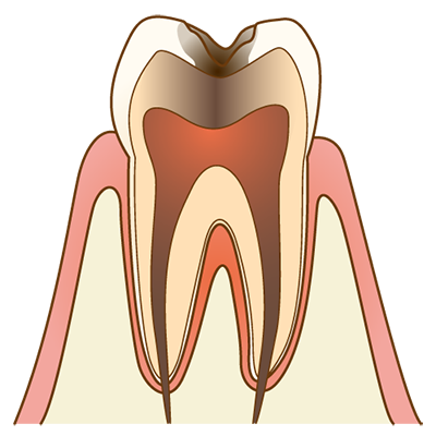 象牙質の内側には、神経や血管が密集した歯髄があり、虫歯がさらに進行して歯の神経まで虫歯菌に感染してしまうと歯髄炎となり、歯がひどく痛みだします。こうなると、虫歯になった部分の歯を削るだけでなく、歯髄まで取らなくてはなりません。治療が終わるまで時間がかかるうえ、歯髄を取ると歯がもろくなってしまいます。
