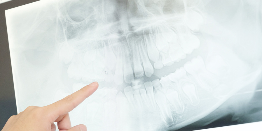 現代の日本人はあごが小さく、あごの奥に親知らずの生えてくる場所が確保されにくい骨格をしているため、適正な位置にうまく生えてこないことがよくあります。その影響で、親知らずが横向きに生えてしまう、前の方に傾いてしまう、歯の一部だけしか顔を出さない…などの問題が発生します。また親知らずは歯肉や骨の中に埋まったままの状態になることもあります。これは埋伏歯(まいふくし)と呼ばれ、手前の歯を圧迫するため歯並びが乱れたり、隣接する歯に悪い影響を与えたりなど、トラブルの要因となります。そして、埋伏歯と歯肉の隙間から細菌が入り、化膿してしまう可能性もあります。