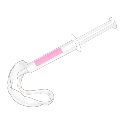 歯列にフィットしたマウストレーにホワイトニングジェルを用いて使用します。1日2時間の使用で、およそ2週間という短い期間で着色歯面の改善を行うことが可能です。(効果は個人差や飲食嗜好習慣等によって異なります。)主成分である過酸化尿素は歯面への刺激が少なく、自由な時間にご使用頂くことができます。主に加齢による着色、喫煙等外因性による着色、遺伝による着色が改善されます。「後戻り」が少なく効果の持続が期待できできます。